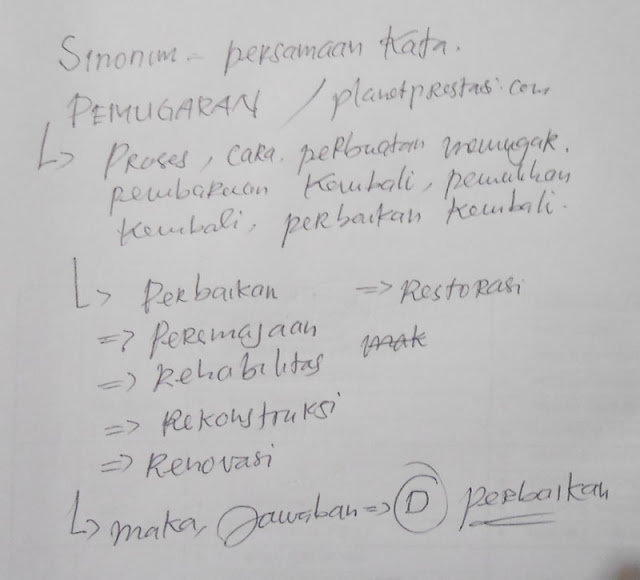 Tuntaskan Soal TPA SINONIM.Kali ini saya akn share soal dan pembahasan soal TPA sinonim disini.Nah soal sinonim yang akan saya share di sini adalah soal dan pembahasan berjumlah sepuluh butir soal.Pembahasan soal sinomin ini masuk dalam kategori
